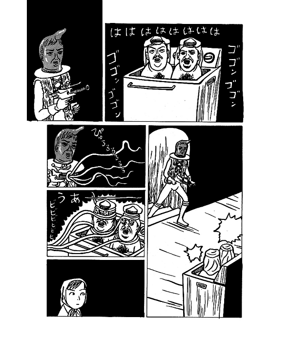 In a bizarre city where Russian, Middle Eastern, and European influences blend, young Anne is looking for work and one day, she finally finds it: she'll be a cook on a pirate kappa submarine! From the moment she boards the Takobune, she embarks on an unforgettable journey through haunting landscapes, battles with terrifying beings, encounters with indecipherable characters, and crazy experiences, in a crescendo of captivating surrealism. This is an Italian edition and contains little text.